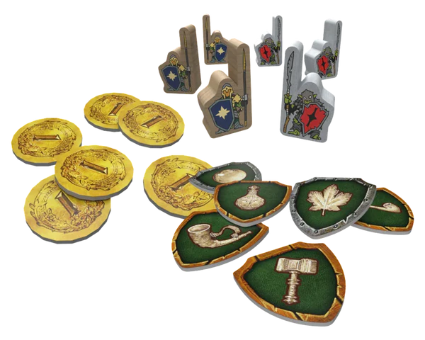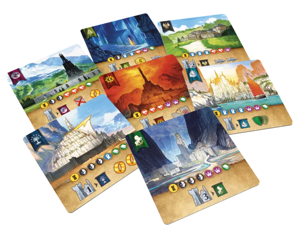 Contenido: 102 Cartas de facción (Pueblos Libres), 102 Cartas de facción (Sombras), 24 Cartas de Misión, 60 Fichas de Daño y Tensión, y 1 Reglamento.