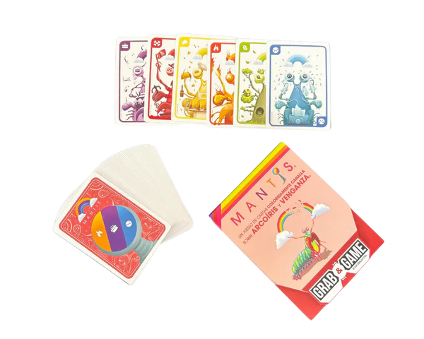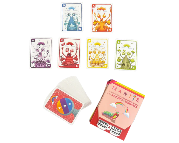 MANTIS (GRAB & GAME) es otro juego de cartas diseñado por el equipo de Exploding Kittens, centrado en el color, la codicia y la venganza. Es un juego sencillo de aprender, pero con una capa de estrategia basada en las elecciones de color.
