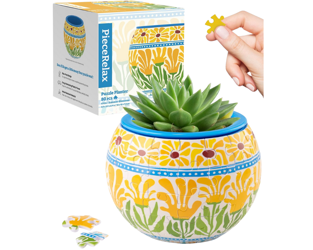 Descubre la creatividad y funcionalidad de este rompecabezas que se transforma en una maceta decorativa con diseño de flores de verano. Su propuesta combina entretenimiento y utilidad, ya que puede usarse para colocar una planta real o incluso como lapicero, aportando color y frescura al hogar o al aula. La imagen destaca por su estilo alegre y vibrante, evocando la esencia de la temporada y convirtiéndose en un detalle único para regalar o disfrutar en familia.