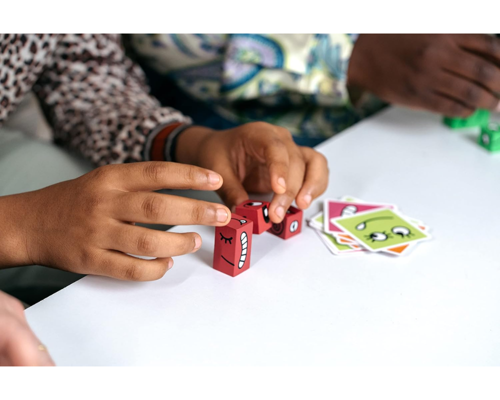 Cubeez es un juego frenético que desarrolla la agilidad visual, la coordinación motriz y la resolución de problemas espaciales de manera muy divertida. Las caras graciosas que se forman garantizan risas en la mesa.