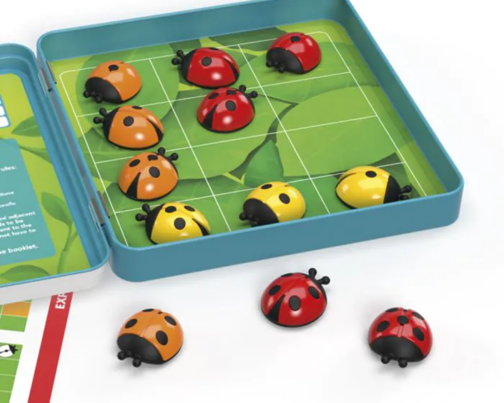 Este juego de lógica contiene 48 desafíos, desde nivel inicial hasta experto, con soluciones incluidas. A través de pistas como “La mariquita está a la izquierda del gusano” o “El escarabajo está en la fila superior”, los jugadores aprenden a usar la lógica deductiva paso a paso, sin necesidad de leer texto complejo.
