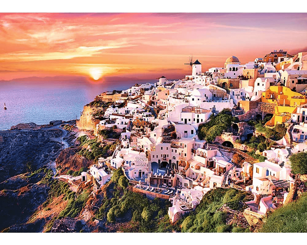Puesta de Sol sobre Santorini. Rompecabezas 1000 piezas. Marca Trefl