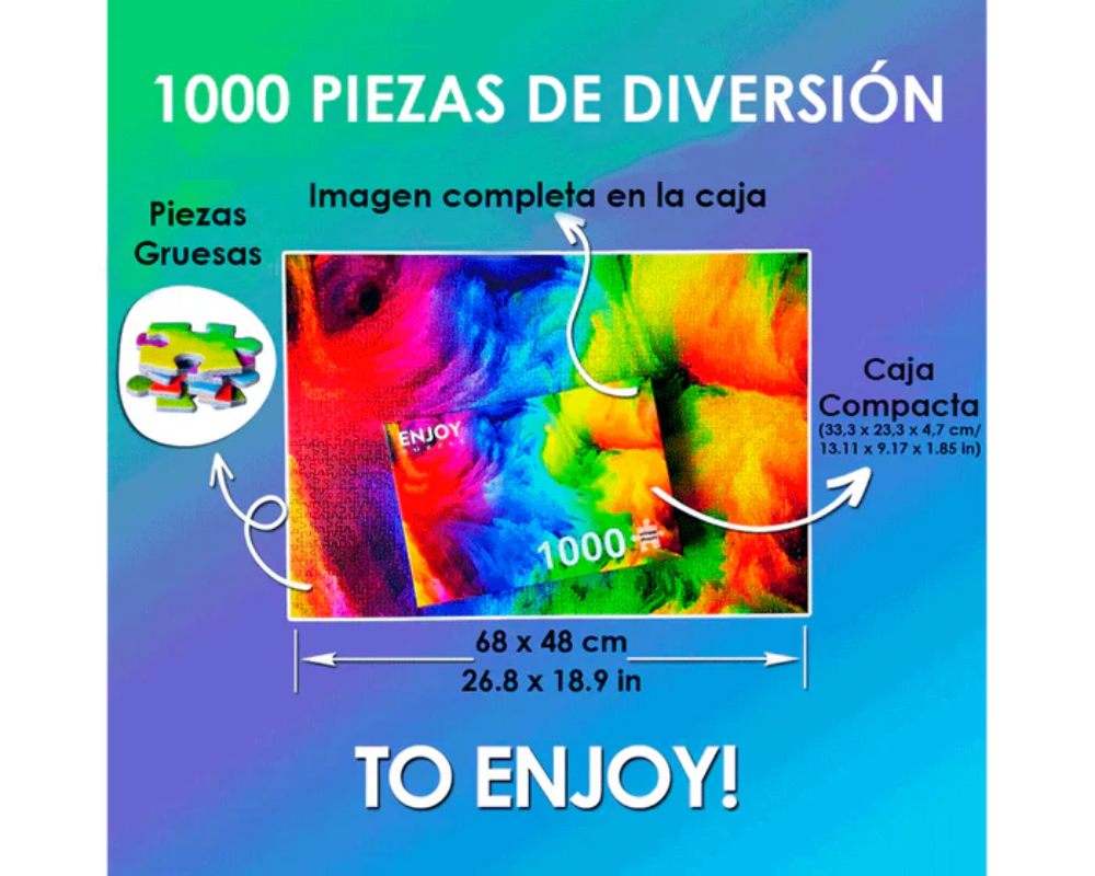 Un rompecabezas artístico en 1000 piezas. La combinación de elementos fotográficos y de diseño proporciona un desafío visual único y divertido.