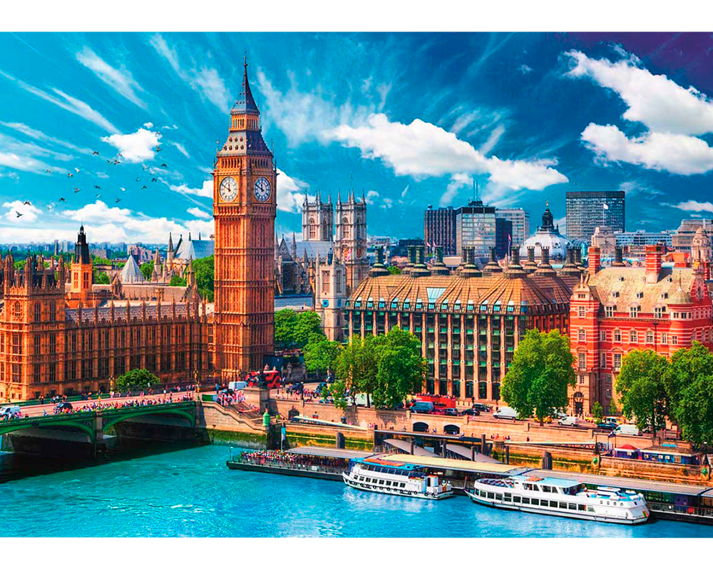 En Día Soleado en Londres, cada pieza encaja perfectamente, permitiendo disfrutar de una imagen vibrante y detallada de esta emblemática ciudad. Ideal para regalar o disfrutar en casa, este rompecabezas combina calidad y estética en una experiencia única.