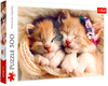 Disfruta de la calma con el Rompecabezas Gatitos Durmiendo de 500 piezas de Trefl. La imagen captura una escena adorable de pequeños felinos acurrucados, perfecta para una sesión de armado relajante y rápida.