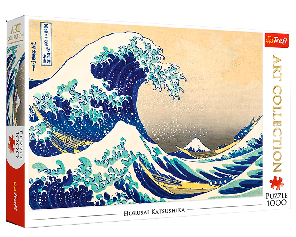 Rompecabezas La Gran Ola de Kanagawa – Trefl (1000 piezas) Sumérgete en la icónica obra de Katsushika Hokusai con este rompecabezas de 1000 piezas de Trefl. La imagen captura la fuerza y belleza de la famosa ola, un símbolo del arte japonés que ha trascendido generaciones.