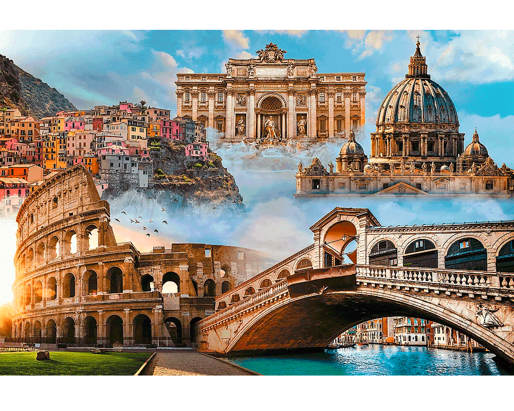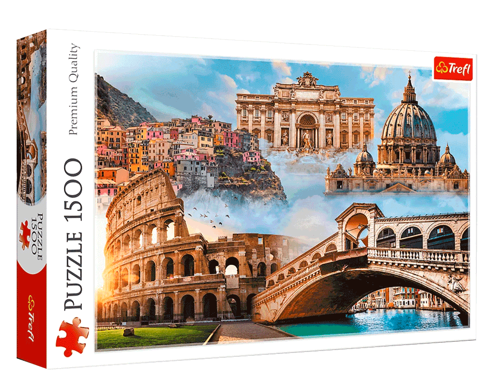 Rompecabezas Lugares Favoritos de Italia – Trefl (1500 piezas) Explora la grandeza de Italia con este rompecabezas de 1500 piezas de Trefl. La imagen destaca los lugares más impresionantes del país, permitiéndote reconstruir cada detalle de su arquitectura y paisajes emblemáticos.