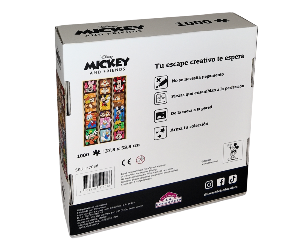 Celebra la amistad y diversión de Mickey junto a sus amigos con este rompecabezas de 1000 piezas de plástico resistente, impresas en alta definición para capturar cada detalle de una escena llena de color, alegría y complicidad.