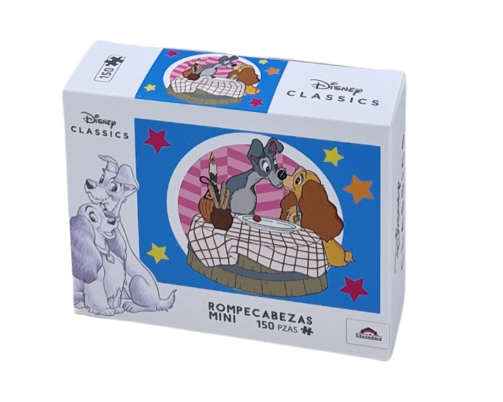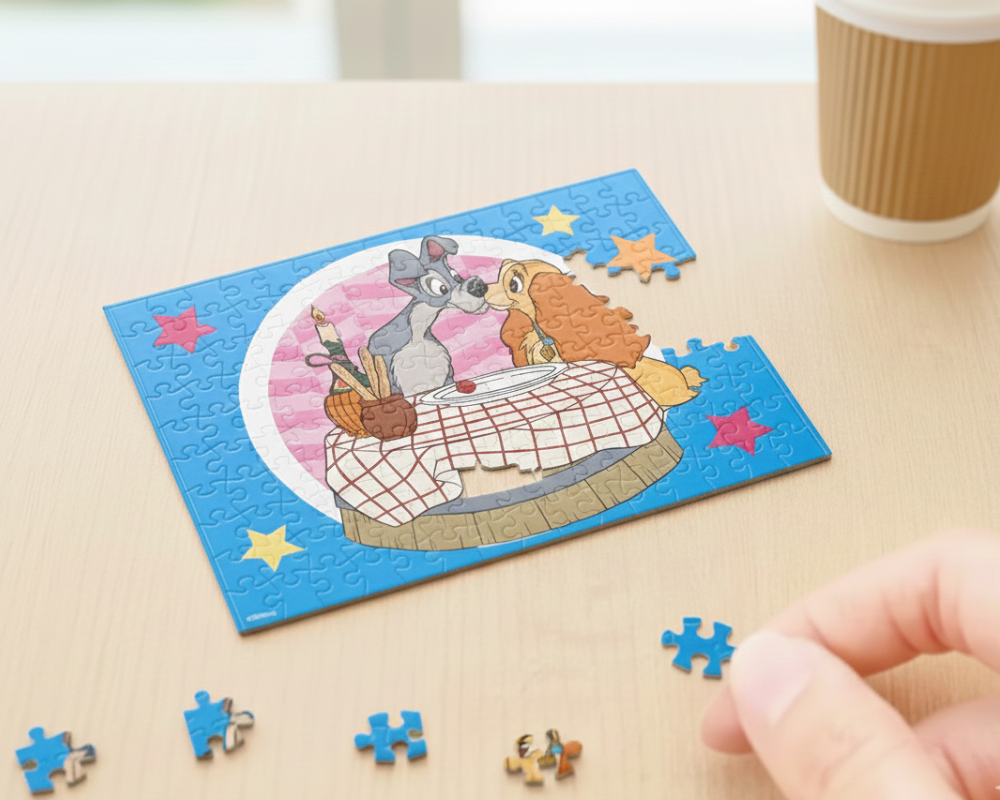 Arma la escena más romántica de Disney con este rompecabezas miniatura de La Dama y el Vagabundo, ideal para fans que disfrutan del reto y la concentración. Incluye 150 piezas de plástico de 1 cm, impresas con alta definición para capturar cada detalle de la icónica cena del espagueti.