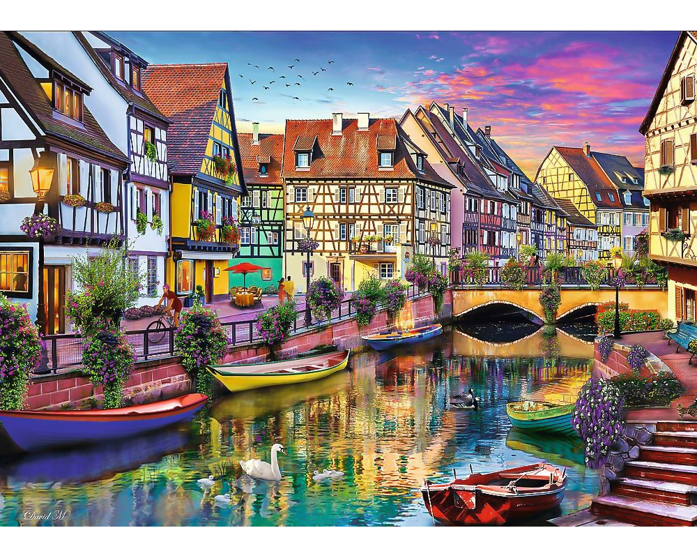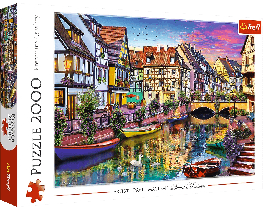 Rompecabezas Puerto de Colmar, Francia – Trefl (2000 piezas) Explora la belleza pintoresca de Colmar con este rompecabezas de 2000 piezas de Trefl. La imagen captura la esencia de este encantador puerto francés, con sus coloridas casas reflejadas en el agua y su atmósfera tranquila.
