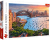 Adéntrate en la vibrante cultura australiana con el rompecabezas Sidney, Australia de 1000 piezas de Trefl. La imagen se centra en el famoso skyline de la ciudad, destacando la Casa de la Ópera y el Puente del Puerto.