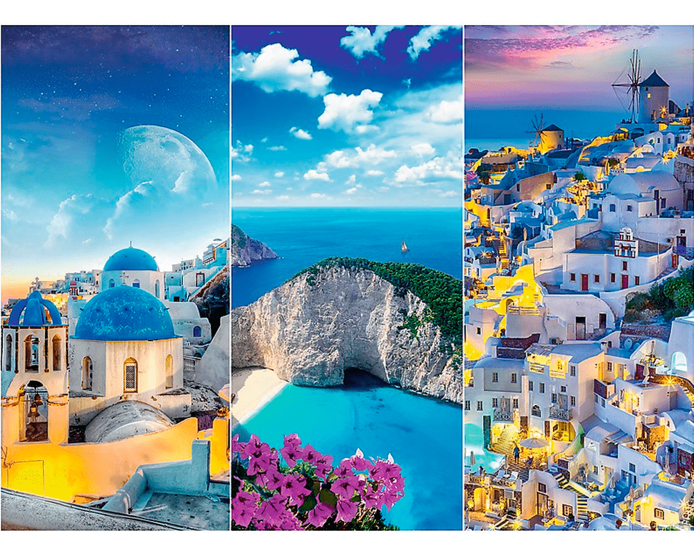 Rompecabezas Vacaciones en Grecia – Trefl (3000 piezas) Sumérgete en la belleza de Grecia con este rompecabezas de 3000 piezas de Trefl. La imagen captura la esencia de los paisajes griegos, con su arquitectura icónica y el azul vibrante del mar, ofreciendo una experiencia envolvente mientras ensamblas cada pieza.