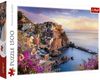 Arma la pintoresca costa de Cinque Terre con el Rompecabezas Vista de Manarola, Italia de 1500 piezas de Trefl. El desafío radica en el contraste entre las casas de colores vivos apiladas en el acantilado y el azul profundo del mar.